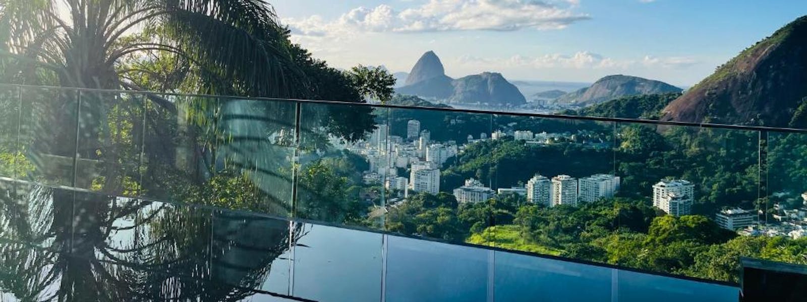 ❣️ Para relaxar um terraço na cobertura com vista panorâmica da baía do Rio de Janeiro recebe você com uma piscina de borda infinita, espreguiçadeiras e um bar à sua disposição. Tudo cercado pela selva.